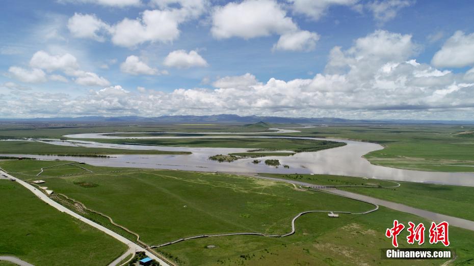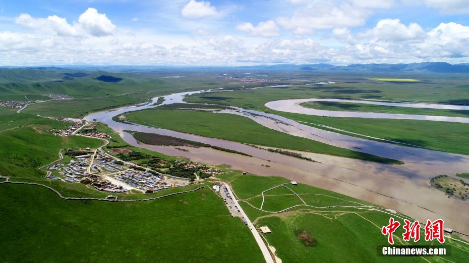 黃河九曲第一灣位于四川省阿壩藏族羌族自治州若爾蓋縣唐克鎮(zhèn),此處是四川、青海、甘肅三省交界處,黃河水在這里形成一個(gè)巨大的回灣,被稱為黃河九曲第一灣。黃河和白河將這里的草原分割成無數(shù)河州、小島,水鳥翔集,澄河蜿蜒曲折,清澈的河流水勢平緩,藍(lán)天白云,綠草繁花,帳篷炊煙,牛羊駿馬,盤旋的雄鷹,如詩如畫,氣象萬千。圖為黃河九曲第一灣風(fēng)光。安源攝
