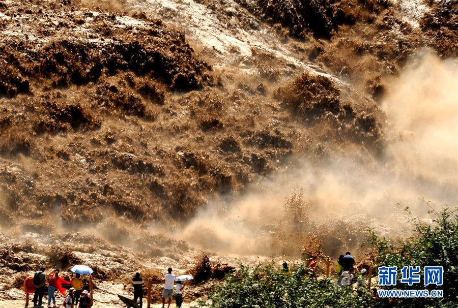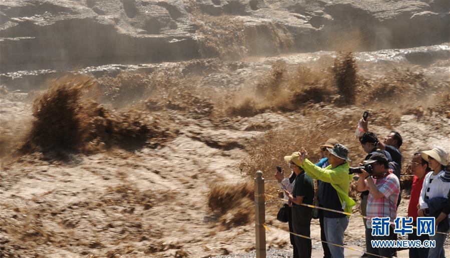 8月26日,游客在黃河壺口瀑布景區(qū)游覽。近日,受上游降雨和水庫泄洪影響,黃河壺口瀑布水量增大,形成壯美瀑布群,吸引眾多游客觀景賞瀑。新華社記者馬毅敏攝