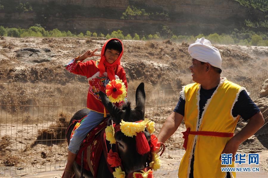 8月26日,來自河南安陽的游客在壺口瀑布景區(qū)拍照留念。近日,受上游降雨和水庫泄洪影響,黃河壺口瀑布水量增大,形成壯美瀑布群,吸引眾多游客觀景賞瀑。新華社記者馬毅敏攝