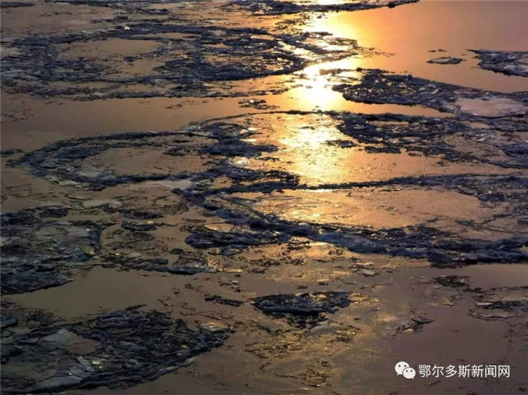 凌過準(zhǔn)格爾,始如蓮花盛開,次第綻放,一路聚合,形成凌淤,至黃河上中游分界處,蔚為壯觀,成為黃河上中游交界段美倫美奐的自然景觀。