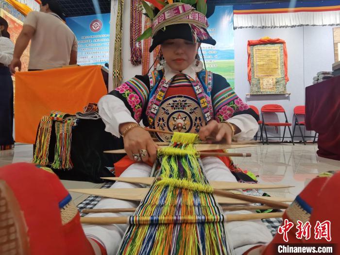 中新網(wǎng)甘肅張掖6月8日電 (閆姣)腳蹬紡織板,手持木梭子,甘肅甘南藏族自治州舟曲縣藏族姑娘全庸卓瑪坐在地上,展示省級非遺織錦帶,藏族婦女用其束腰、扎靴。她說,這項技藝后繼乏人,希望通過這種“走出去”的活動,讓更多人了解這一獨特文化。
